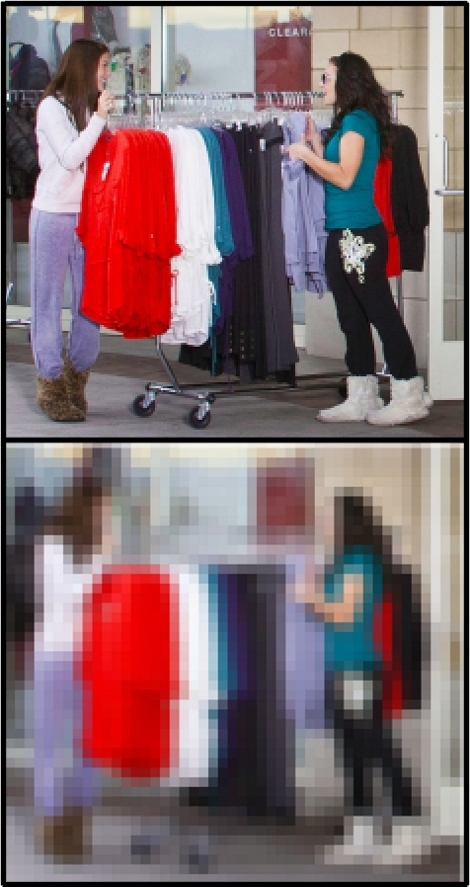 As part of a class session on research design, I discuss the topic of choosing a sample size. I use this learning activity immediately prior to a lecture component on statistical power and the relationship between sample size and confidence intervals. My pupose in creating this extended metaphor is to build my student's intuition about the advantages and disadvantages of large sample sizes. As shown in the screen shot from my PowerPoint presentation, I describe four different digital cameras with image resolution ranging from 3 megapixels to 24.6 megapixels. I describe how photos taken with the highest-resolution camera have fantastic image clarity, whereas photos taken with the lowest-resolution camera have relatively poor image clarity. To drive this point home, I produce two mounted 14" x 19" photos, and I pass them around the class. One photo is a 24.6 megapixel image of customers in front of a store. The other photo is a 3 megapixel version of the same image. As might be expected, the 3 megapixel version suffers from severe digital distortion and pixelation when enlarged that size. I point out that for maximum image clarity, there is no substitute for a high-resolution camera. (With the images that are shown to the right, I have tried to represent what the students see, but the printed photos are more striking.) I then point out that it's possible to enlarge the photos to "zoom in" and closely examine a part of the image that we're particularly interested in. I pass around another pair of large mounted photos. One photo is an enlargement of two customers in the 24.6 megapixel image, and the other photo is the same enlargement from the 3 megapixel image. I point out that if we want to "zoom in" on a particular part of the scene, the 24.6 megapixel image starts to suffer, but the 3 megapixel image is practically useless. I then direct students' attention back to the PowerPoint screen to discuss the prices of the cameras. Obviously, higher-resolution cameras are much more expensive. I ask students to imagine they are taking a photo archive of something important, such as a friend's wedding. I ask students to imagine they have a $2,500 budget for digital cameras to take this photo, but there is a catch: digital cameras can take only one picture, and after taking the one photo, the camera is useless. I ask, "Would you purchase one high-resolution camera? Or maybe four of the 12.2 megapixel cameras? After all, with four cameras you could take four pictures of the wedding. Maybe you could take the four pictures from different angles? Or maybe you could take four pictures at different times of the day? How about the 3 megapixel camera? You could buy 100 of those with your budget. Would you rather have 100 of those?" I do not let this discussion go on too long because it inevitably gets too specific into photographs and stretches the metaphor too thin. For this part of the discussion, I simply want students to recognize that low-resolution photos can be useful for certain things. I finish this extended metaphor by mapping it onto my topic of interest and then summarizing the take-aways: "We've been talking about digital photos, and they are metaphorically similar to sample sizes in survey design. High-resolution photos are a lot like surveys with large sample sizes. They give clarity into what we're seeing, and they let us 'zoom in' and look at specific sub-samples with decent clarity. However, they're very expensive. Low-resolution photos are a lot like surveys with small sample sizes. They give us a pretty good idea of the overall scene, but they do a poor job of letting us 'zoom in' to look at sub-samples. On the other hand, these small-sample studies don't cost nearly as much, which makes them useful for certain tasks." I then move to a lecture component on sample sizes, confidence intervals, and statistical power. I conclude the lecture component with a reprise of the learning points in this metaphor. |