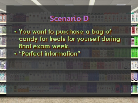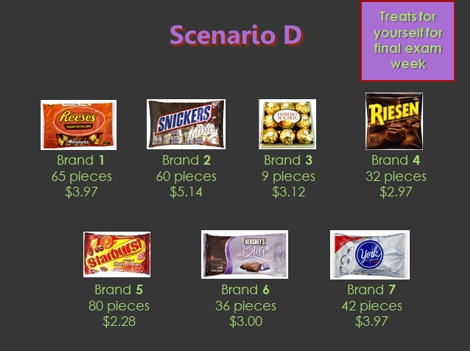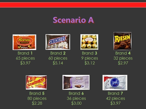For this learning activity, I do an in-class replication of a classic research finding: the accuracy/effort trade-off in consumer choice. In essence, I run a within-subject experiment with two conditions (restricted effort and high effort). I pass out a form for students to use in marking their choices during the learning activity. As shown here, I establish a consumption scenario that is relevant to the students (candy for final exam week). I create a choice set that includes a few brands of candy that students are unlikely to have tried. I then create a restricted-effort condition by severely limiting the time in which students can make the decision. Based on experience, I have learned that requiring students to make a choice within three seconds of seeing the consideration set is a procedure that reliably produces low-accuracy choices. After a few more choices in other consumption scenarios (which I use for purposes other than those described here), I create a high-effort condition. In this condition, I use the same consumption scenario as the restricted-effort condition, but I emphasize that students now must make the perfect choice for that choice scenario. As part of the manipulation, I say "You sometimes hear about the idea of 'perfect information.' Well, for this choice, I need you to get as close to 'perfect information' as possible. For example, I suspect there are some candies on that list that you have never tried. Is that right? For this exercise, I need you to make a perfectly accurate choice, so I need you to taste the candies. I have brought samples of each candy [small Halloween-sized pieces], and I need you to try each of them." I also add, "If you don't eat candy, or if you're a 'conscientious objector' for some other reason, that's okay. You'll just need to play along. But if you're willing to eat candy, I need you to sample each of these candies." (I have tried this exercise with other product categories such as root beer and fruit juice, but I have never found any product that everyone would try.) I must manage the class carefully at this point, lest the group move too far into a 'class party' atmostphere. I typically need to announce the following a few times: "Remember, this isn't just fooling around. This is work. I need you to make the perfect choice for your consumption scenario. Taste it, read the wrapper for nutritional information, read some online reviews, or gather whatever information you like to make sure you're making the perfect choice for you." After all their choices have been made, I tally the study's results while I stand in front of the class. The aspect of the exercise that is relevant to the effort/accuracy trade-off is the proportion of students whose restricted-effort choice was different from their high-effort choice. The proportion of students with different choices in the two conditions is very high -- usually about 50% of the class. I ask students to explain the reason for their changes in preference, and they often mention they had never tried one of the options, and by trying it they discovered they liked the taste. After exploring the specifics of their choices, I generalize the effect for students by labeling the high-effort choice as "truth." As I explain, "That's as close to 'truth' as we're going to get. I gave you plenty of time to make the choice. I asked you to get any information you liked. I even let you taste it. As near as we can tell, your choice with perfect information was 'truth.' Therefore, anything different from 'truth' would be an inaccurate choice." I then develop the effort/accuracy trade-off with constant reference to the inaccuracy demonstrated in the difference between the restricted-effort choices and the high-effort choices. I also develop the reasons that consumers frequently exert very little effort (e.g., self-imposed limits on decision-making effort rather than an artificial three-second time limit). I find that integrating the lecture component and this learning activity together in a side-by-side manner is effective at "driving home" the concept of the accuracy/effort trade-off. |